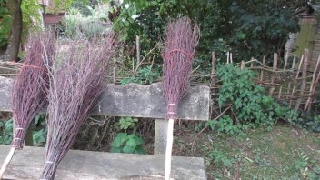 Traditionally a besom was made from three different kinds of wood, Ash for the shaft, Birch twigs for the bristles and Willow strands for the binding cord. Ash is protective and has command over the four elements, Birch is purifying and draws spirits to one’s service, while Willow is sacred to the Goddess and binds them all together. In modern witchcraft today, while the traditional besom still takes pride of place, other woods are used for special purposes: Oak for added power and protection, Pine for luck and health, Redwood for longevity, Maple for love and money, Walnut for health and wisdom, and Cinnamon for spirituality.