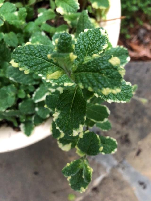 With its lime green leaves edged with a creamy white ruffle, pineapple mint is a perfect plant for the spring garden. This mint is a variegated cultivar of apple mint (