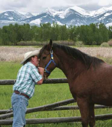 Steve Drippon displays affection to Rooster; loving a special horse. Jerry Slagle / for the Post Register