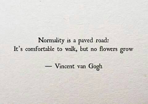 “Normality is a paved road: It’s comfortable to walk, but no flowers grow.” – Vincent Van Gogh